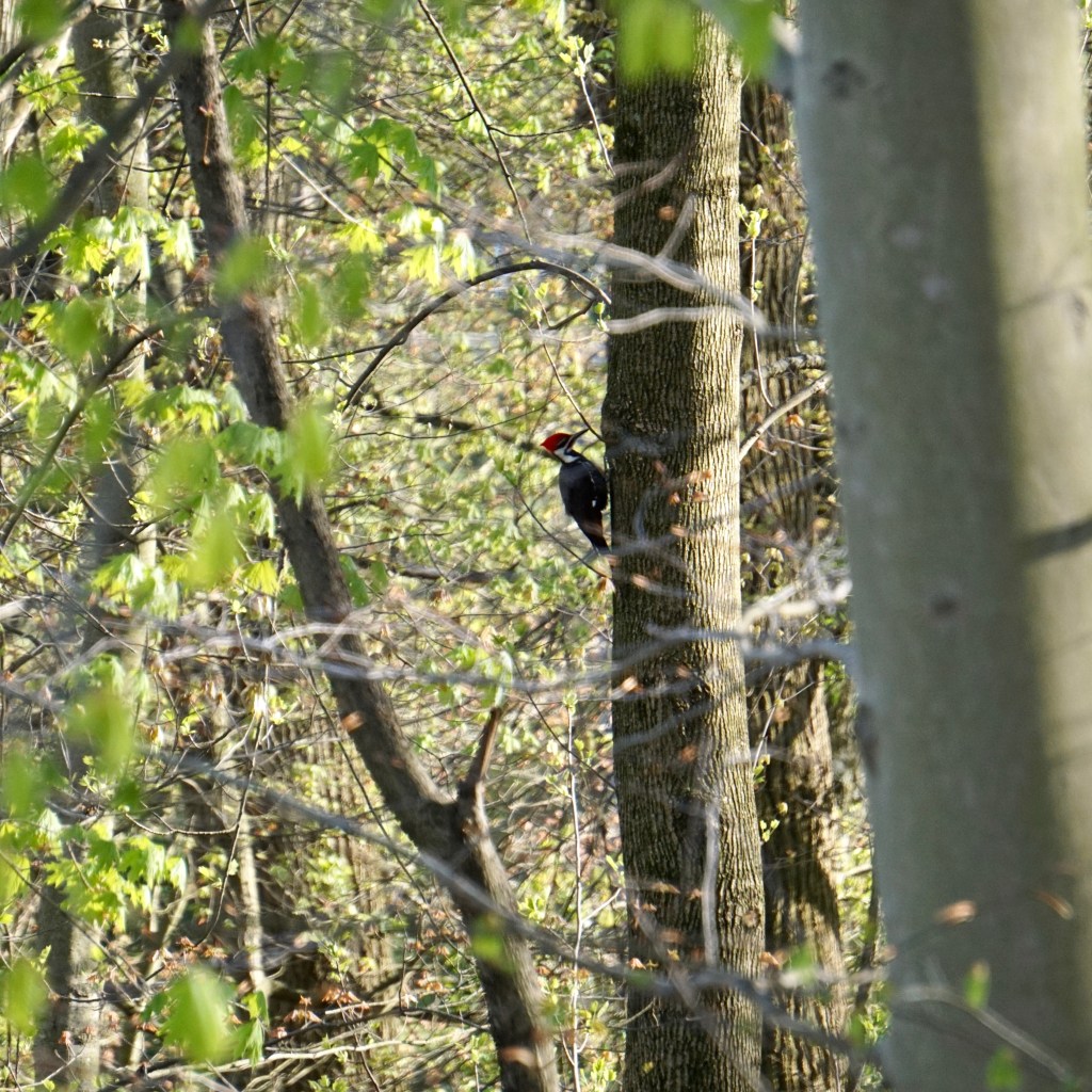 Pileated Woodpeckers are uncommon in this area according to the Peterson’s Field Guide to North American Birds.