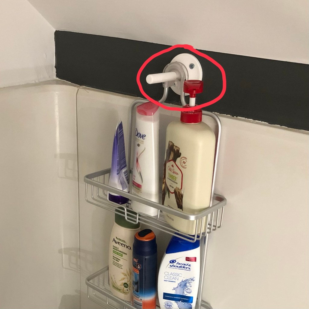 A 3D printer can have many uses in the home. Sometimes appropriate projects are staring you in the face. For example, in my home showers I wanted to hang up some caddies to hold shampoo bottles, etc., but my shower stalls have a shelf that sticks out toward the shower head stem and restricts how wide a caddie could be.