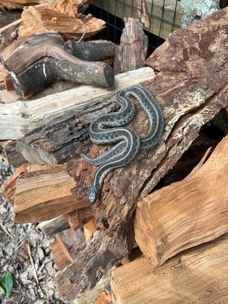 Snake impersonating a log in my woodpile